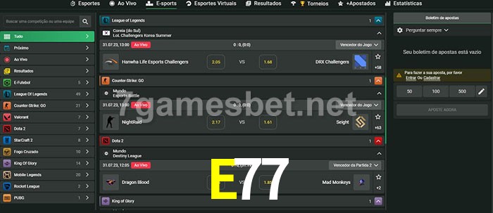 A aposta E77 oferece aos jogadores a experiência mais conveniente de apostas em eSports!